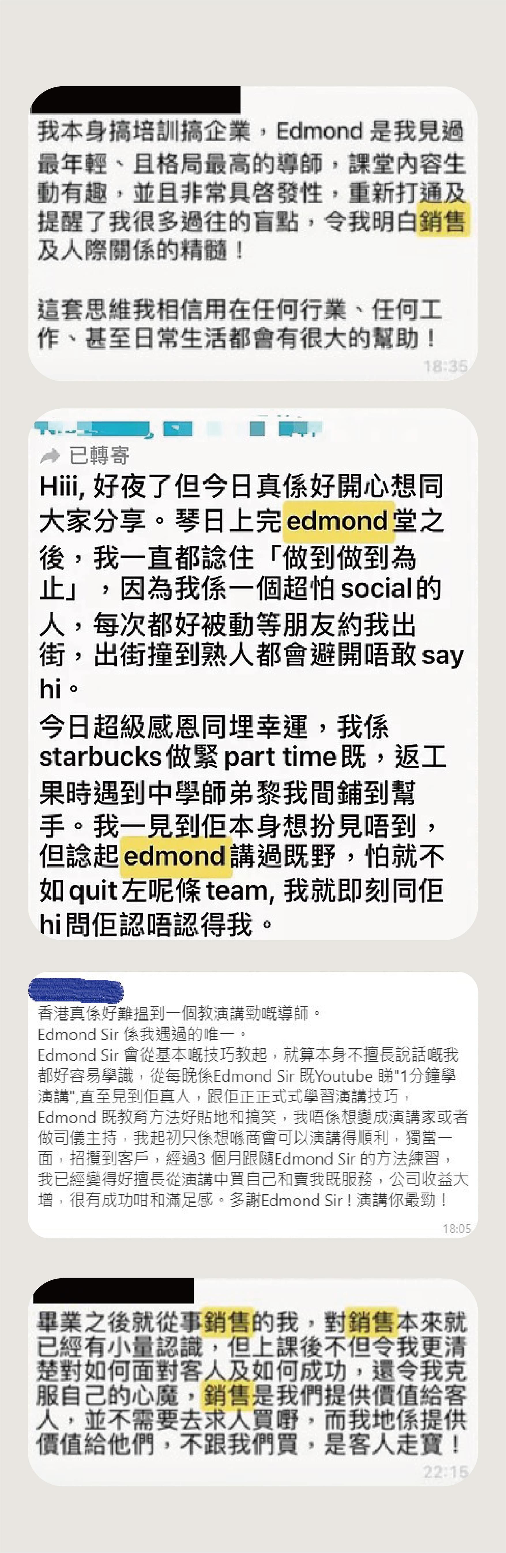 " 我多年的口才及演講技術,由Edmond 接棒"