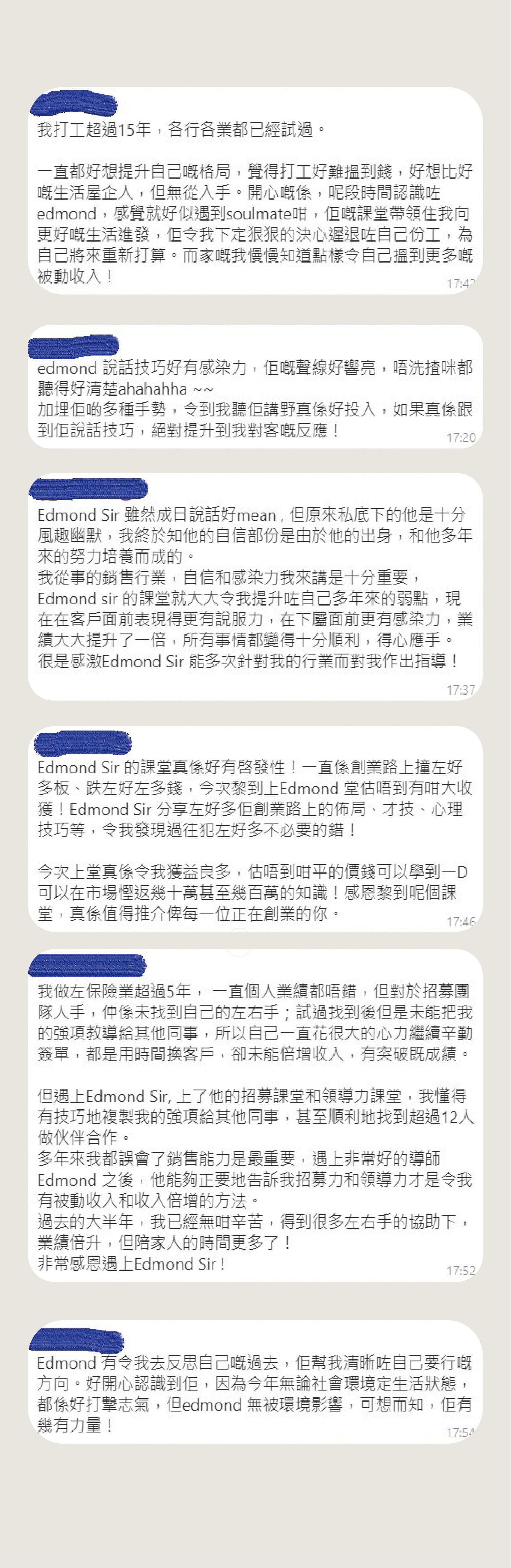" 我見到Edmond是一個真正的領袖, 他不單用言語教導, 還言行一致。"